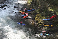 我站在橋上看已經下溪的人,那些參賽者在玩些附近的holes,但心理卻想著:並不強耶。 看了好多人在那邊進進出出的,但是沒有一個人在做花式,或許是美國和台灣的玩法不同吧!! 隨著時間的過去,大部分的船都已經出發前往D點(比賽起點),我要開始著急起來,怎麼辦...哪裡可以拍照啊??